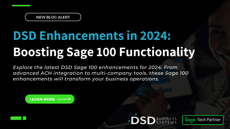 Explore the latest DSD Sage 100 enhancements for 2024. From advanced ACH integration to mu; multi-company tools, these Sage 100 enhancements will transform your business operations.