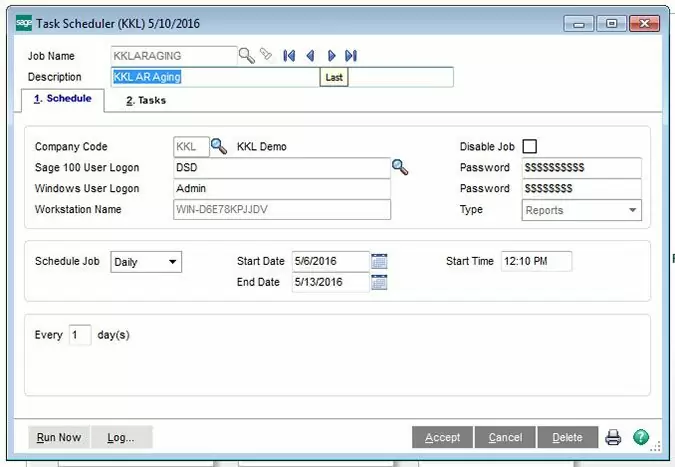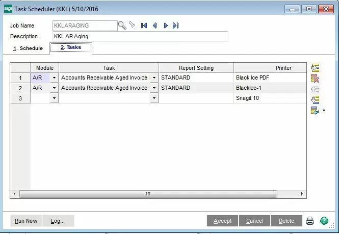 A new feature in Sage 100 version 2016 brings a much needed and requested feature to be able to schedule Sage reports to run anytime, unattended.ย Prior to version 2016, the only feature available in Sageโs Task Scheduler was scheduling Journals and Registers.