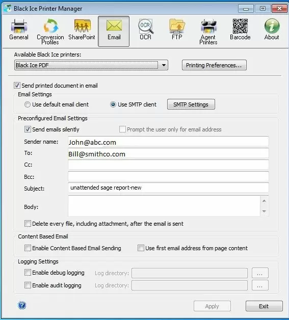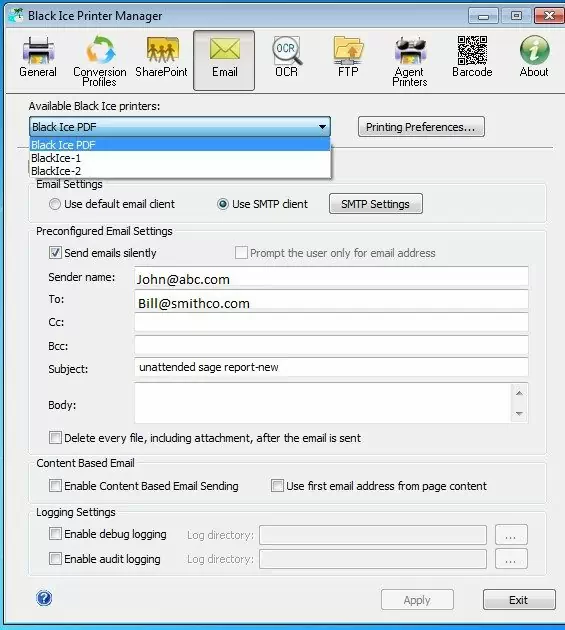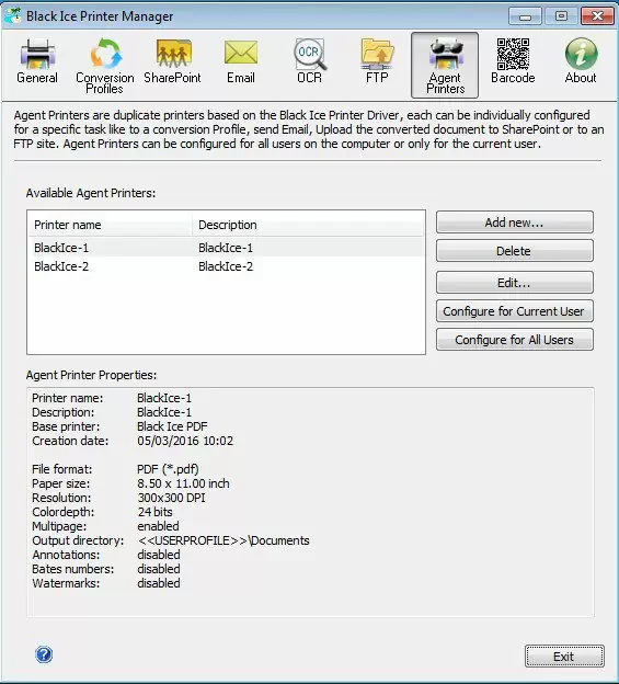 An Example of multiple Printer Agents setup in Black Ice: