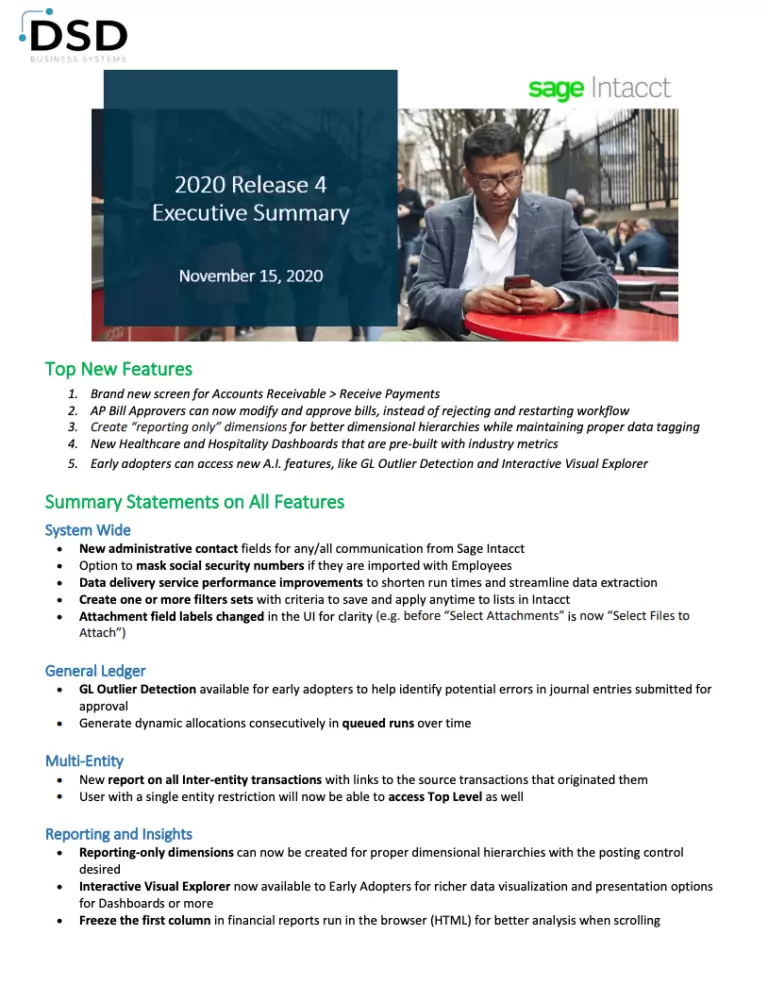 Sage Intacct 2020 Release 4 will make its appearance on November 15th, continuing to help transform the way organizations work by providing features that enable users to work from anywhere and do it smarter and more efficiently than ever.ย