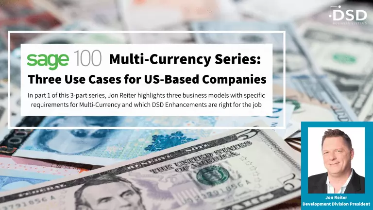 DSD Business Systems has 11 Multi-Currency modules available for Sage 100, and each one is specific to a different business need for foreign currency processing. Learn which one is right for you based on your organization’s needs.