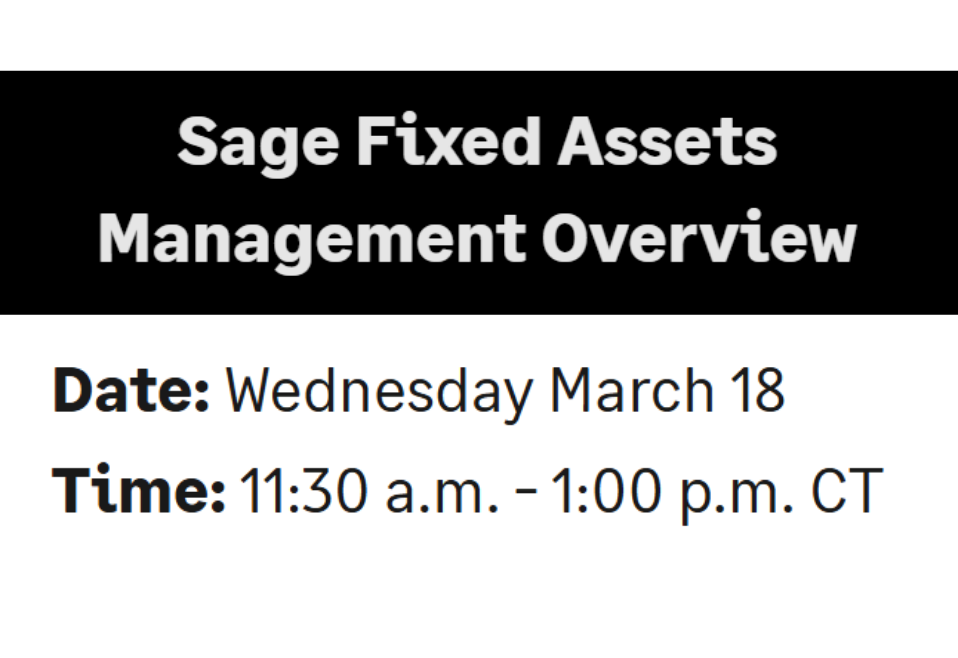 Join us to learn how Sage Fixed Assets Management can streamline your asset management.