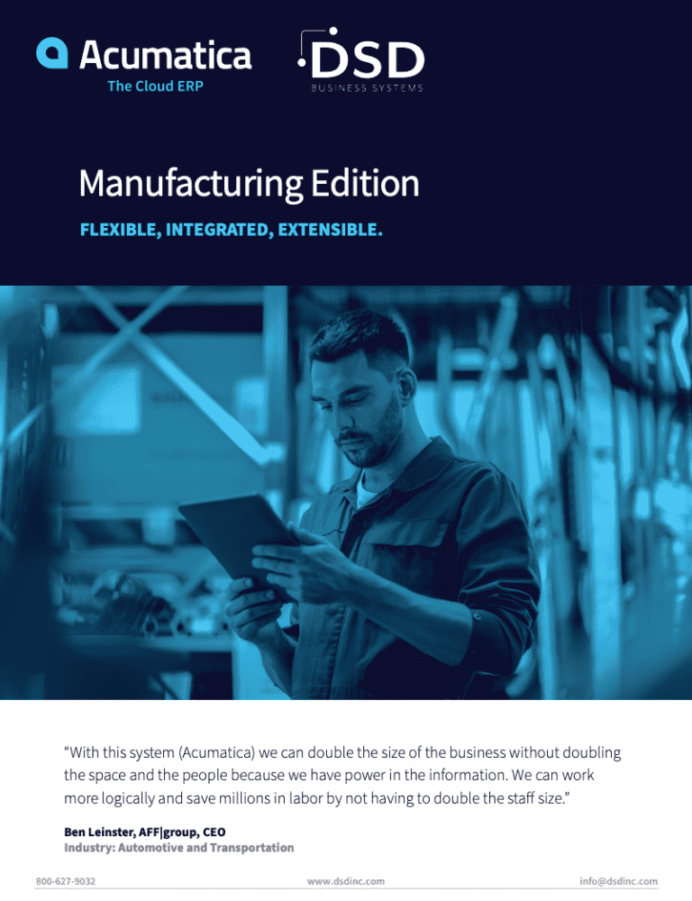 In this Acumatica Manufacturing Edition Brochure, learn how you can manage every aspect of your manufacturing business in one place with Acumatica Manufacturing Edition. Boost efficiency with a comprehensive, mobile, ERP designed for your unique needs.