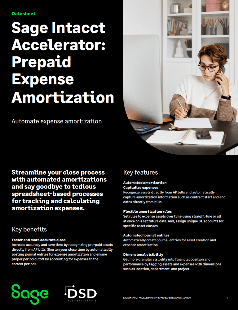 In this Sage Intacct Accelerator: Prepaid Expense Amortization Datasheet, you will learn that Streamline your close process with automated amortizations and say goodbye to tedious spreadsheet-based processes for tracking and calculating amortization expenses.