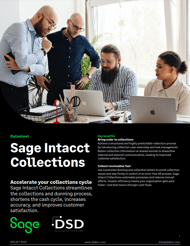In this Sage Intacct Collections Datasheet, learn how to accelerate your collections cycle. Sage Intacct Collections streamlines the collections and dunning process, shortens the cash cycle, increases accuracy, and improves customer satisfaction.