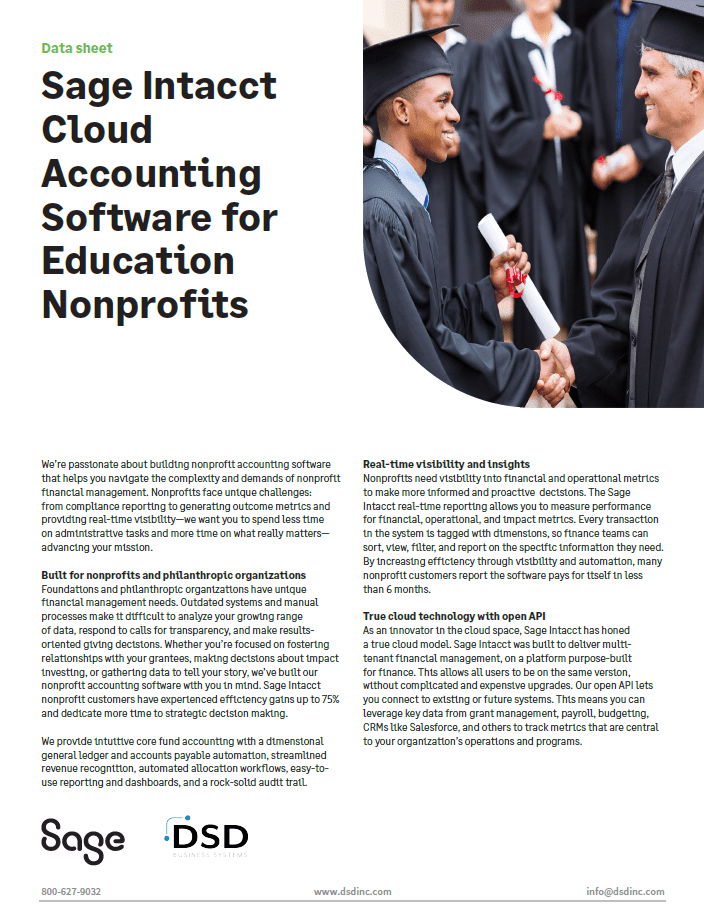 In this Sage Intacct for Education Nonprofits Datasheet, you will learn how Sage Intacct Cloud Accounting Software is a cutting-edge solution designed specifically for education nonprofits. This powerful software streamlines financial management processes, empowering organizations to maximize their impact in the education sector.