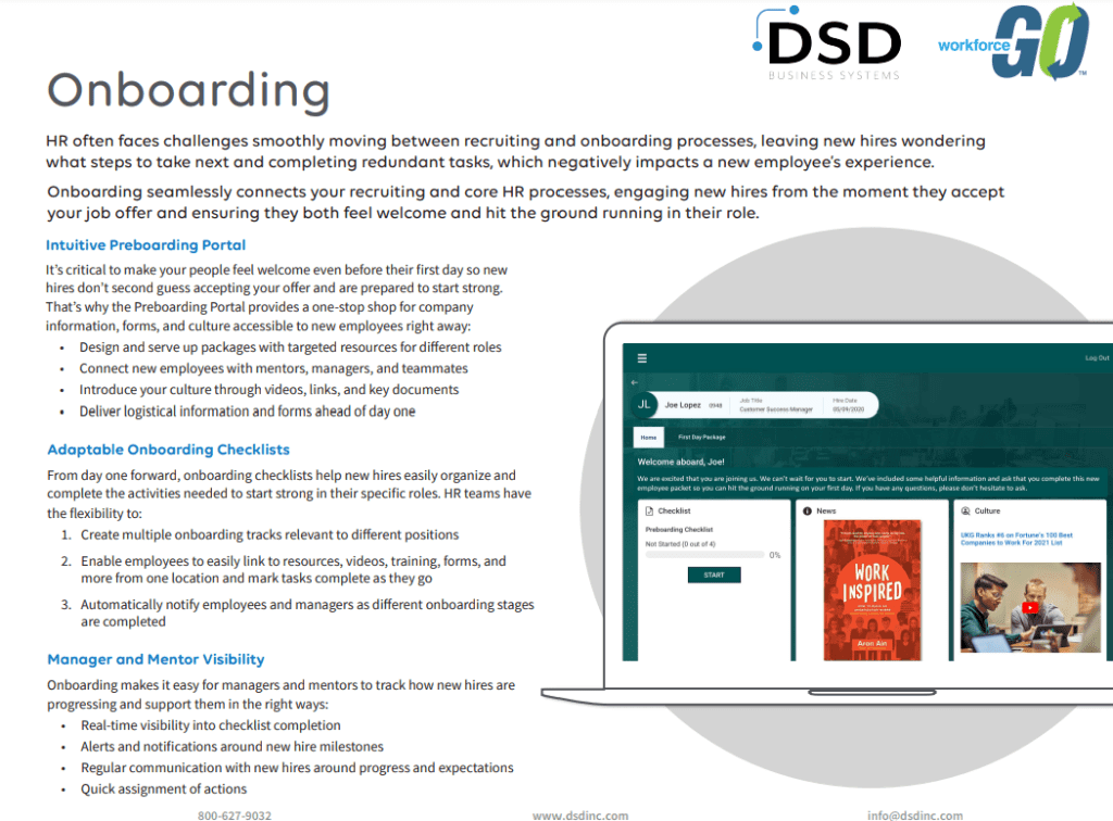 what steps to take next and completing redundant tasks, which negatively impacts a new employee’s experience. Onboarding seamlessly connects your recruiting and core HR processes, engaging new hires from the moment they accept your job offer and ensuring they both feel welcome and hit the ground running in their role.