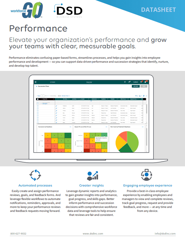 In this Workforce Go Perfomance Datasheet, you will learn that performance eliminates confusing paper-based forms, streamlines processes, and helps you gain insights into employee performance and development — so you can support data-driven performance and succession strategies that identify, nurture, and develop top talent.