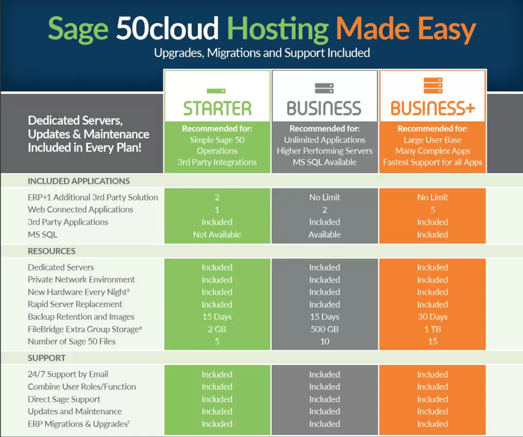 Our service includes after-hours upgrades and maintenance by Sage 50 experts, offering a managed system environment and support for installation, technical questions, and troubleshooting.