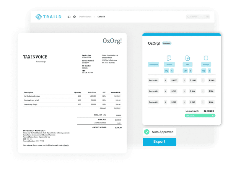 TRAILD is an award-winning AP automation and payment protection platform designed to enhance your Acumatica experience. By streamlining invoice processing and embedding fraud protection directly into your payables workflow, TRAILD empowers your finance team with tools that improve accuracy, reduce risk, and accelerate approvals—without disrupting your existing processes.