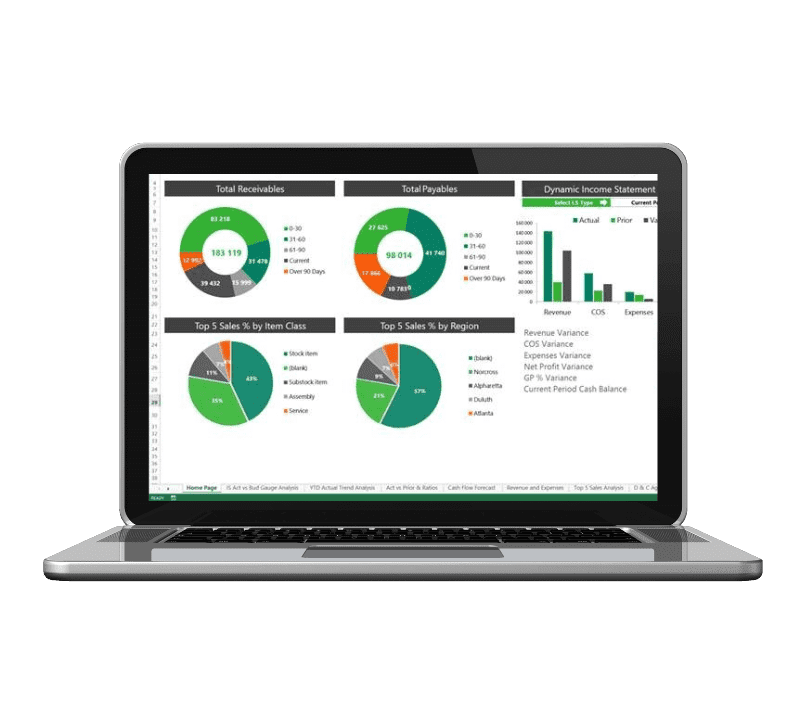Because we know everyone loves Excel, Sage Intelligence enables you to view your data in Excel, where you can take full advantage of the graphs, charts, and slicers that make it easy to see what’s going on in your business.