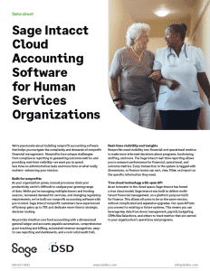 Sage Intacct for human services organizations simplifies accounting and finance for human services organizations that provide food for the poor, shelter for the homeless, care for the aged, education for the young, and community redevelopment.