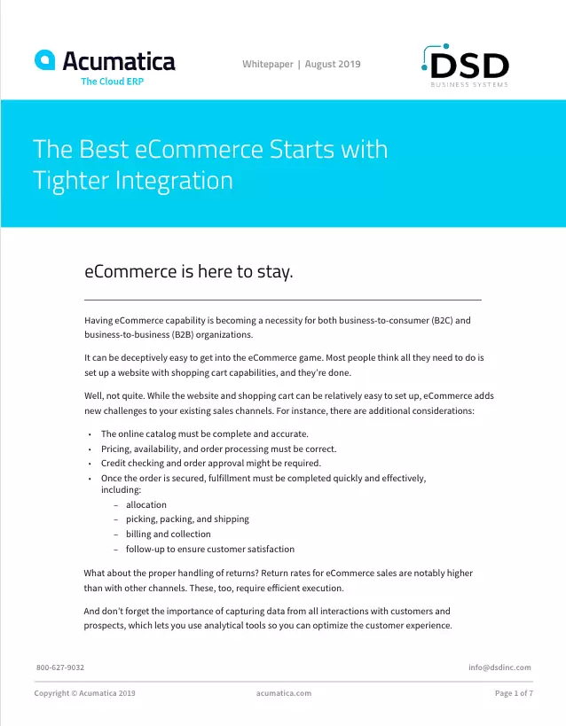 This complete Retail-Commerce ERP solution tightly integrates Acumatica’s Financials, Sales, Inventory, CRM, and Fulfillment systems with popular eCommerce platforms, including native integration to your BigCommerce and Shopify web stores.